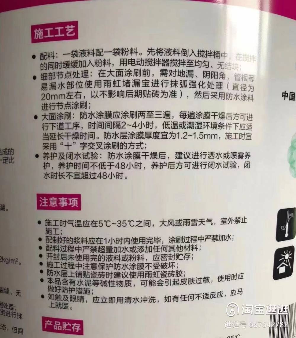 漳州雨虹防水施工时气温应在5℃~35℃之间;